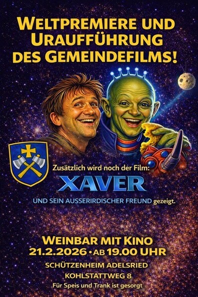 Am Kinoabend wird aber nicht allein diese heimische Produktion von Bürgermeister, Regisseur, Filmteam und Schauspielern vorgestellt, sondern ein weiterer Klassiker des regionalen Filmes wird gezeigt, nämlich die Stauden-Gaudi „Xaver und sein außerirdischer Freund“ (1986).
